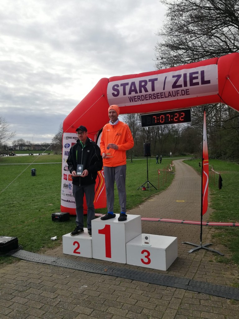 Eine Vereinskollegin hatte mich auf den Werderseelauf aufmerksam gemacht. Dort waren vor 2 Wochen die Deutschen Meisterschaften im 50km Ultra Lauf. Da rechnete ich mir jedoch keine Chancen aus. So hatte ich mich aber schon frühzeitig für den Marathon entschieden, um eine neue PB zu laufen. Leider hatte ich nicht soviel Wochenkilometer wie geplant und hatte meine Zeit schon Nahe an die 3 Stunden angepasst. Aber am Ende ging die Sub 3h tatsächlich auf. Die Bedingungen waren gut, wettertechnisch, und ich hatte in der ersten Hälfte eine schöne 3er Gruppe zum mitlaufen.