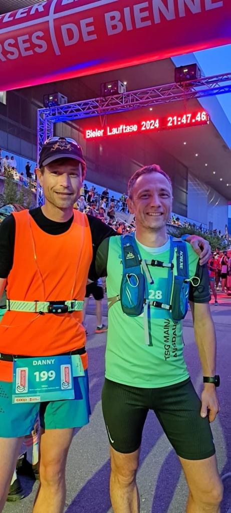Irgendwann musst du nach Biel – So heißt der Spruch und Buch zum 100km Lauf in Biel. Anfang Juni war es schließlich für mich so weit. So bin zu den Biehlern Lauftagen angereist um 22 Uhr an den Start auf den 100km Rundkurs zu gehen. Die Bedingungen(warm und trocken) und die Strecke waren hervorragend. Ich hab Michael 20 Minuten vor dem Start getroffen und wir sind die ersten 30k zusammen gelaufen. Es waren immer andere Läufer im Umfeld oder Sichtweite. Das war vor allem in der 2. Hälfte eine große mentale Hilfe. So bin ich gut durchgekommen und im hellen bei Sonnenschein nach 09:40:56 mit neuer PB ins Ziel gekommen.